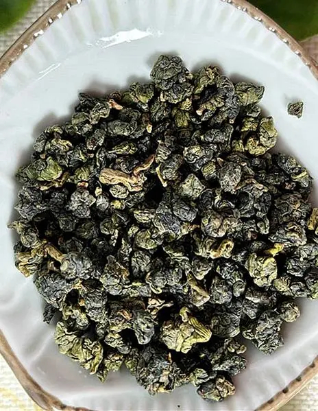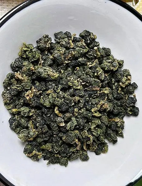 茶乾,是球狀的軟枝烏龍(青心烏龍品種),翠綠中有金黃。